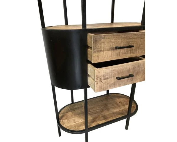 Véritable meuble indus’, l’étagère bois et métal « Tom » sera la pièce qui finira la décoration de votre pièce de vie. Fabriquée à partir de métal noir et de bois de manguier massif, votre nouvelle étagère fait référence par ses formes au mobilier du mouvement art déco. Qu’il est agréable de s’offrir un meuble aussi stylé que pratique !