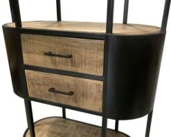 Quatre plateaux vous permettront d’exposer vos plus beaux objets souvenirs et vos cadres photos. Un lierre panaché pourra retomber du plateau supérieur pour une note végétale tout en élégance. Dans les deux tiroirs avec fonds en MDF, vous pourrez ranger différentes babioles, revues ou jeux de carte par exemple. A vous de voir l’usage que vous ferez de ce mobilier industriel. Votre meuble vous apporte une aide non négligeable question rangement. Parfait pour obtenir un espace de vie organisé et ordonné.