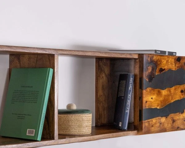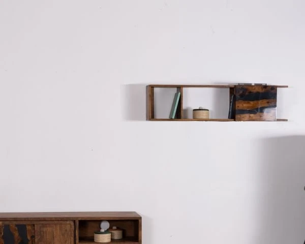 Si vous cherchez un élément mural décoratif et pratique à la fois pour ajouter une touche d’élégance naturelle à votre décoration intérieure tout en optimisant l’espace, alors l’étagère murale en acacia et résine de la collection « Membatu » vous séduira.
