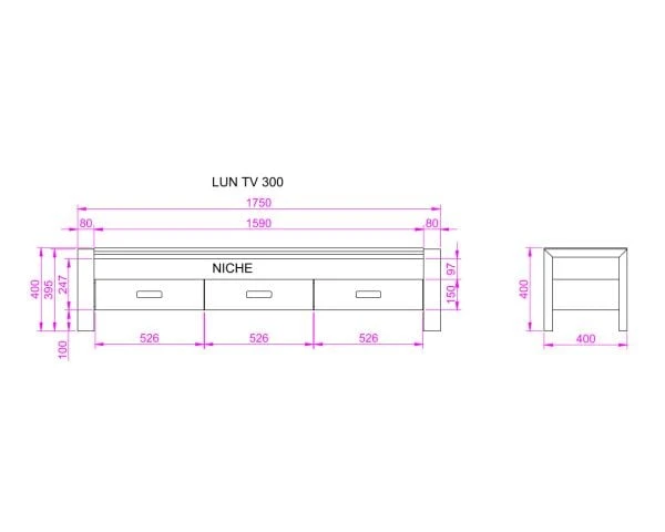 Longueur : 180cm; Hauteur : 40cm; Profondeur : 40cm
