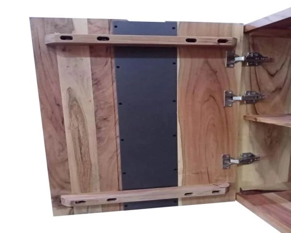 Matières : Acacia massif, pieds métal noir, fond en MDF