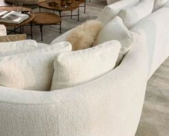 Composé de différentes parties individuelles, il permet plusieurs combinaisons et il apporte une élégance évidente à votre espace salon. Chez Meuble House, nous sommes fans de son textile bouclé et immaculé qui capte la lumière et qui nous donne la sensation d’être assis parmi les nuages. Avec sa main douce et agréable, le tissu nous invite à nous asseoir avec volupté.