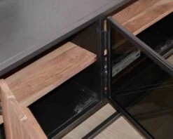 De chaque côté, un placard séparé par une étagère en bois vous permettra de stocker ce qui doit rester à l’abri des regards indiscrets. Au centre, une double porte vitrée dissimule deux caissons hyper pratiques pour ranger votre matériel hifi. Bien à l’abri de la poussière, votre lecteur DVD, votre console et votre box internet seront protégés du tumulte d’une vie mouvementée ! Qu’elle soit en verre ou en bois, chaque porte profite d’une poignée métal sobre et ergonomique. Fermée par des aimants, les portes ne risquent pas de s’ouvrir par inadvertance. En bref, un meuble aussi beau que pratique.