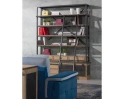 Installée devant un mur clair, cette bibliothèque en chêne ponctuée de fer brossé noir attirera tous les regards. Elle habillera l’espace de ses dimensions de L. 171 x P. 42 x H. 230,5 cm. Les sols foncés ou les revêtements muraux peints dans des tons soutenus seront pour leur part habilement adoucis par la teinte du bois et l’échelle avec double roue sera la touche finale du meuble. D’ailleurs on adore son look et son côté ultra pratique qui permet d’aller chercher ce livre tout en haut de la bibliothèque ! Vous transformez votre salon en piste de danse et vous avez peur que vos amis se prennent les pieds dedans ? Pas de soucis car elle se retire très facilement.