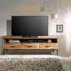 L’emploi de bois massif recyclé permet de donner une seconde jeunesse à ce matériau au sein de ce mobilier. La teinte de votre table basse pourra avoir des motifs naturels variables dus aux différents bois utilisés lors de sa conception. Il se peut même que de vieilles tâches bleues ou rouges soient légèrement visibles.