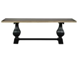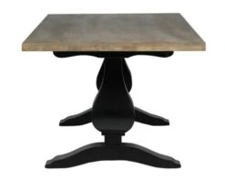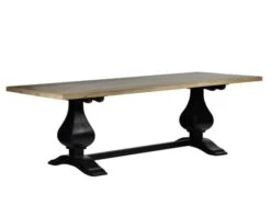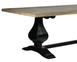Cette grande table rectangulaire noire et naturelle a été réalisée dans un style élégant mêlant la modernité des lignes du plateau au côté baroque du piétement. Le jeu de couleurs bois naturel/bois peint apporte encore plus de caractère et de personnalité à cette table en bois de 240 cm de long et de 100 cm de large.