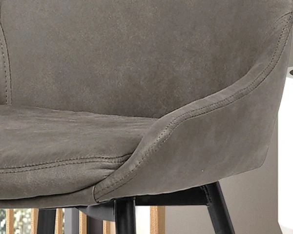 Cette chaise offre une belle hauteur de 86 cm, une largeur de 49 cm et une profondeur d’assise de 43 cm. Elle se trouve à mi-chemin entre le fauteuil et la chaise. Ce meuble est constitué d’une assise rembourrée pour un confort optimal et d’un dossier se poursuivant sur les deux accoudoirs. Quatre pieds en métal montés de style compas assurent l’aplomb et l’équilibre de la chaise en microfibre « Malo ».