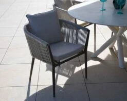 Designé avec soin pour vous accueillir avec confort et style, la chaise style fauteuil en aluminium et cordage « Cheverny » vous séduira par ses lignes modernes et enveloppantes à la fois. Avec ses dimensions de 65 x 65 x 74,5 cm (largeur x profondeur x hauteur) elle n’est ni trop petite ni trop volumineuse. Vous aurez facile à l’assortir à votre table de repas si vous souhaitez la commander pour en profiter lors des déjeuners et dîners au jardin.