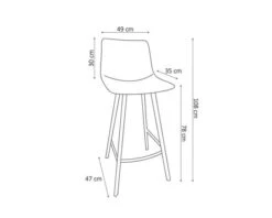 Hauteur : 108 cm, Hauteur d’assise : 78 cm, Longueur : 49 cm, Profondeur : 47 cm, Profondeur d’assise : 35 cm