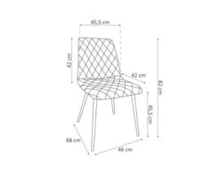 Hauteur : 82 cm – Hauteur d’assise : 45,5 cm – Largeur : 46 cm – Profondeur : 68 cm – Profondeur d’assise : 42 cm