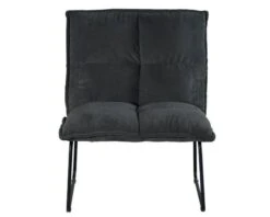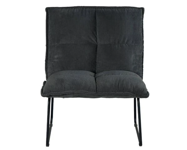 Fauteuils en métal noir et tissu 100% polyester gris aspect côtelé et matelassé.