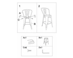 Hauteur : 106 cm, Hauteur d’assise : 77 cm, Largeur : 47 cm, Largeur d’assise : 31 cm, Profondeur : 43 cm, Profondeur d’assise : 31 cm