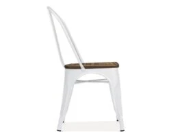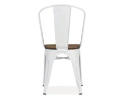 Lot de 4 chaises bistrot en métal blanc et assise en orme.