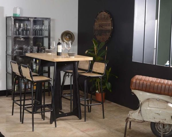 Table carrée mange-debout industrielle.