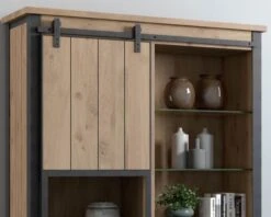 Exposez vos envies, vos plus beaux objets souvenirs ou votre verrerie la plus raffinée dans cette superbe vitrine de la gamme « Breeze » ! Avec ses teintes éternelles de gris foncé et de brun naturel, elle met idéalement en valeur vos affaires dans votre bureau, votre cuisine, votre salon ou votre salle à manger.