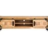 Votre console ou votre box trouveront leur place au centre de votre nouveau meuble télé indus’ 160cm. Bien installés, ils verront leurs câbles passer à l’arrière du mobilier grâce au dos percé. Magazines et autres bouquins seront bien rangés dans un des deux compartiments latéraux tandis que le second recevra plaids ou autres objets nécessaires à vos soirées télé.