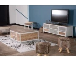 Insufflez une ambiance industrielle à votre déco avec ce meuble TV à roulettes 160 cm de la collection Atelier blanc. Conçu en métal et bois de manguier avec une finition patinée, son design Factory intemporel et authentique apportera une touche de modernité à votre intérieur.