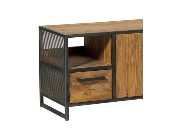 Livré déjà assemblé, votre meuble bois et métal sera installé en un temps record dans votre living. Vous pourrez pourquoi pas lui associer la table basse de la même collection pour obtenir une harmonie. Le teck avec sa couleur chaleureuse saura twister votre séjour. A noter qu’en employant un bois recyclé, chaque meuble peut disposer de variations de teintes ce qui apporte encore plus de charme et d’authenticité à votre ameublement. Comme vous, chaque élément est unique. Et surtout, vous n’aurez pas le même meuble que Monsieur et Madame Tout Le Monde… Pas mal non ?