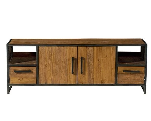 Offrez-vous un meuble TV industriel au charme unique. Unique grâce à l’emploi de teck recyclé et de fer vieilli au caractère affirmé. Unique par l’upcycling intelligent de ressources. Unique par la conception de qualité et la fabrication soignée.