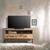Ce trĂšs beau meuble de tĂ©lĂ©vision de la collection Moluca, est composĂ© de bois de teck massif recyclĂ©. Le teck recyclĂ© est un bois dâexcellente qualitĂ©, parfois centenaire et dâune robustesse exceptionnelle, comparable Ă celle du chĂȘne. Ce meuble de tĂ©lĂ©vision est une piĂšce de mobilier extrĂȘmement pratique mais aussi trĂšs dĂ©corative. En effet, dâun design sobre autant quâĂ©lĂ©gant, il prĂ©sente tous les atouts du trĂšs beau mobilier : joli bois veinĂ© aux belles teintes blondes et finitions de haute qualitĂ©. Mais ce meuble possĂšde Ă©galement toutes les caractĂ©ristiques de lâĂ©quipement fonctionnel, avec ses larges compartiments et ses niches qui sauront vous offrir toute la place nĂ©cessaire au rangement de votre Ă©quipement de tĂ©lĂ©vision (lecteurs DVD et blue rays, coffrets DVD etc.). Le tiroir, montĂ© sur rails mĂ©talliques, estt facile et agrĂ©able dâutilisation. Le plateau de ce meuble de tĂ©lĂ©vision est suffisamment large pour accueillir un tĂ©lĂ©viseur de grande dimension.