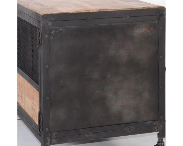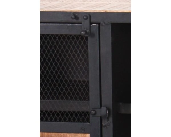 Vous trouverez pratiques ses deux grandes niches ainsi que son placard à porte grillagée. Par ailleurs, cette dernière est complétée par un panneau en bois de manguier massif vieilli à dessein pour un rendu des plus esthétiques. La présence du bois couleur miel permet d’adoucir le style général du meuble et de le réchauffer. Ses finitions style factory sont laissées brutes pour d’avantage de personnalité et de charisme. Un autre avantage, non négligeable, de ce meuble TV métal, réside dans le fait qu’il est percé à l’arrière pour permettre le passage des câbles de vos appareils high-tech. Ainsi, vous pourrez facilement placer votre lecteur Blu-ray et votre box internet tout en rangeant vos DVD, magazines, livres…