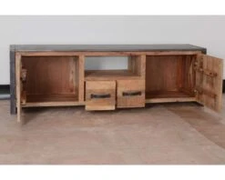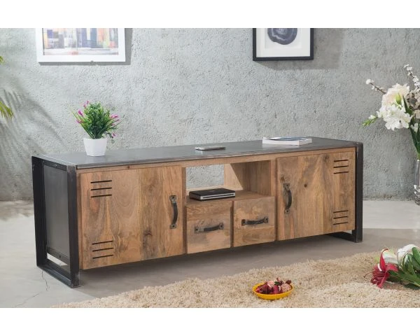 Combinant bois exotique et métal, votre nouveau meuble TV se farde d’une personnalité industrielle bien trempée. Ce meuble a vraiment épuré la tendance jusqu’à obtenir un look parfait avec un belle finition factory.