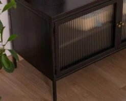Que votre salon soit moderne ou dans un style baroque, ce meuble 4 portes ne manquera pas de trouver sa place. On l’imagine très bien face à un canapé d’angle en tissu vert bouteille et accompagné d’un luxueux tapis tissé main. Noir, ce meuble s’harmonise avec tout. Si vous préférez révéler vos volumes, ce meuble combinant 3 matériaux durables et solides sera plus utile qu’une utilisation massive de la couleur.