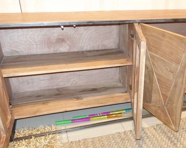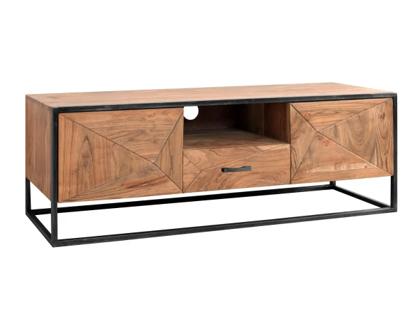 Meuble TV plasma à la fois design et brut dans un style comtemporain. Ce meuble TV massif fait partie de la collection « Manhattan » , il est équipé d’un tiroir d’une niche et deux emplacements avec portes équipées d’un systéme push up.
