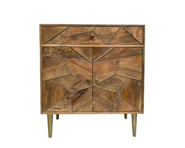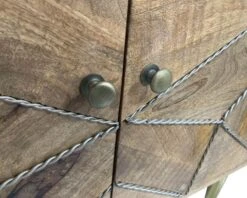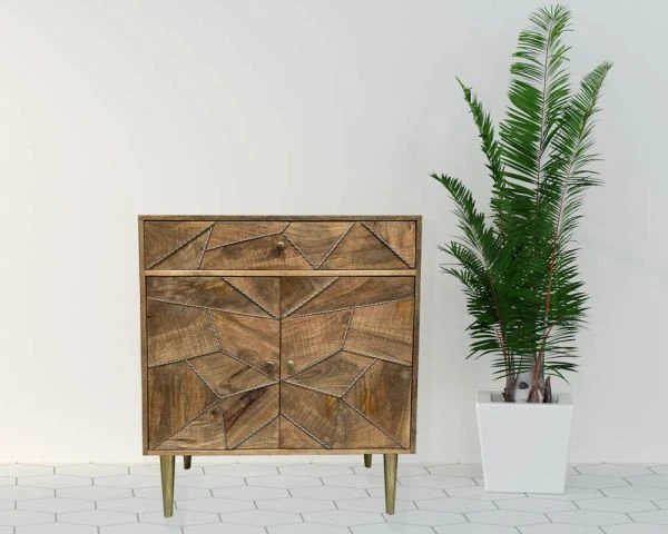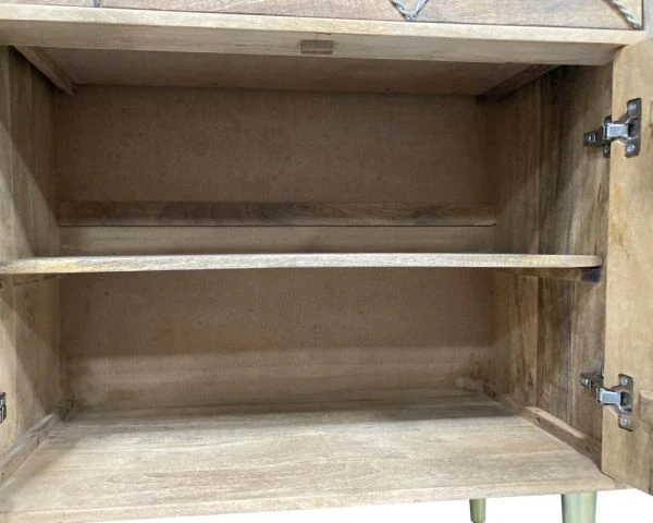 Osez le changement avec ce mobilier réalisé en bois de manguier massif agrémenté de pieds en métal aspect laiton et de détails en fer brut. Son motif en façade ressemble à s’y méprendre aux nervures d’une feuille. La nature est tellement belle qu’elle sert régulièrement de source d’inspiration aux designers et ici c’est le top !