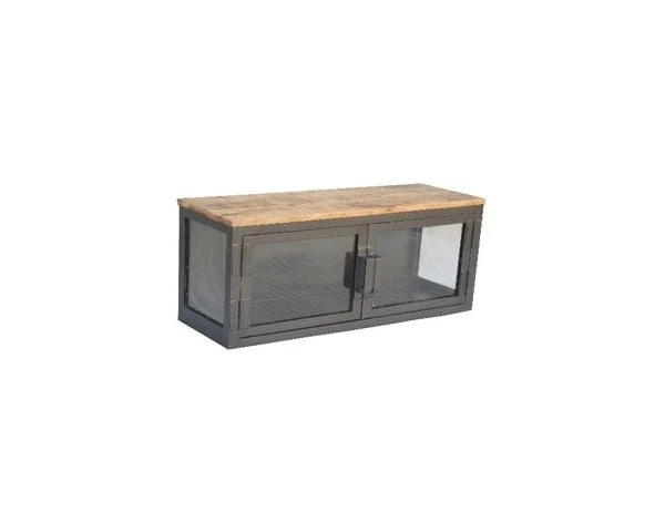 Le métal dans sa couleur noir antique contraste avec le manguier massif, variété de bois exotique porteuse d’une chaleur envoûtante qui se prête parfaitement aux associations avec des matériaux « froids ». Les parois vitrée de cette étagère industrielle permettent de profiter à chaque regard de la beauté de l’association bois et métal tout en vous laissant de nombreuses opportunités de décoration.