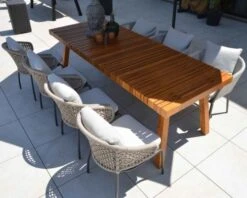 Composé de trois modules, votre canapé extérieur vous fait jouir de généreuses dimensions hors tout de 386 x 247 x 64 cm et d’une profondeur totale de 105 cm. Vous pourrez vous y détendre entre 8 à 10 personnes au minimum. Tendance et cosy à la fois, votre nouvelle méridienne XXL est garnie d’une mousse respirante QuickDry et profite d’un piétement en aluminium résistant à l’oxydation. Votre canapé avec retour est une très belle pièce de valeur. Pour composer un salon de jardin complet, pourquoi ne pas vous faire plaisir en lui associant les tables de la même gamme ? Imaginez-vous en train de vous prélasser sous le soleil d’été ou en train de partager une coupe de champagne avec vos amis en admirant les étoiles…