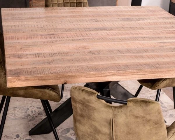 Vous apprécierez la texture naturelle douce mais non parfaitement lisse du plateau. Sous vos doigts vous sentirez une matière naturelle, non standardisée et donc beaucoup plus charmante et authentique. Encore peu connu dans nos intérieurs, le bois de manguier mérite sincèrement d’être découvert. Avec ses fines stries brunes qui panachent la couleur plus claire du reste de la matière, le bois exotique de manguier est vraiment magnifique. Vous aurez plaisir à dresser votre vaisselle sur ce superbe meuble c’est certain ! A coup sûr, votre intérieur va gagner en caractère avec cette belle table industrielle et vous aurez beaucoup de joie à y rassembler famille et amis pour des déjeuners ou diners inoubliables.