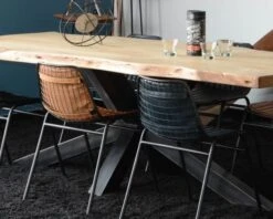 Avec son piétement en métal noir de style mikado, votre grande table de cuisine s’enjolive de finitions originales et tendances. Les jambes de vos 8 à 10 invités ne seront aucunement bloquées par ces pieds croisés si magistraux. Installée au milieu d’un épais tapis lin ou de couleur, votre table s’harmonisera habilement à votre décoration. Vos serviettes et votre vaisselle seront disposées sur un véritable écrin et vos repas entre amis ou en famille seront juste merveilleux.
