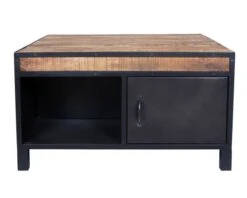 Mêlant l’aspect brut du métal noir au côté chaleureux et cosy du bois, la table basse carrée industrielle « Kraft, Atelier » est un exemple de raffinement et d’élégance. Sa structure en métal noir comprend deux placards ainsi que deux niches de rangement, parfaits pour ranger les télécommandes, magazines, livres et DVD… Quant au plateau carré de 80 centimètres de côté, il s’avère assez compact pour s’intégrer à tous les salons et assez spacieux pour accueillir vos apéritifs dînatoires et autres plateaux repas. Rarement une table basse n’aura été aussi fonctionnelle !