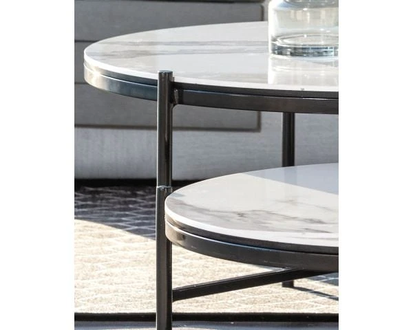 Devant votre salon de jardin ou contre votre transat, votre table ronde (diam. 80 cm – haut. : 40 cm) vous permettra de déposer votre magazine et votre smartphone. Avec le design de ses trois pieds noirs et son plateau en céramique imitation marbre blanc, elle fera preuve de style. Simple et élégante, la table d’extérieur « Lazy Beach » se veut à la fois raffinée et utile. Seule ou juxtaposée au modèle de taille inférieure (Diam. 60 cm – Haut. 30 cm), cette table basse est idéale au jardin : elle est en effet légère tout en étant résistante aux intempéries. L’aluminium de sa structure est un matériau plus haut de gamme que le métal et il a l’avantage de ne pas s’oxyder. Vous pourrez ainsi la laisser dehors en été même sous un orage ou la pluie. Nous vous recommandons tout de même de l’hiverner et pourquoi pas de l’installer dans votre véranda à l’automne pour y mettre une belle plante ou vos livres en cours…