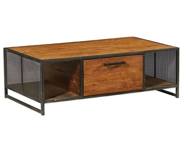 Sa structure en métal comprend deux niches latérales ainsi que deux tiroirs (recto/verso) parfaits pour ranger les magazines, livres, télécommandes ou DVD… Quant au plateau en bois, il s’avère assez compact pour s’incorporer à tous les espaces et à la fois assez spacieux pour accueillir vos plateaux repas ou apéritifs dinatoires. Rarement une table basse n’aura été aussi fonctionnelle et authentique !