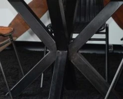 Le pied en métal de votre table industrielle a été réalisé à l’aide de quatre larges tiges qui se croisent pour former un piétement appelé « mikado ». Naturellement et sans aucune gêne, les jambes de vos amis se glisseront sous votre meuble et ces derniers seront parfaitement installés.