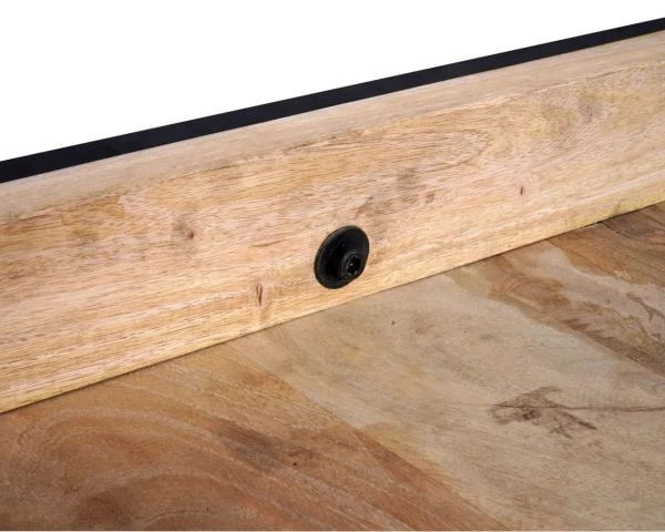 La table à manger carrée industrielle « Atelier » dispose d’une structure avec pieds doubles venant maintenir le plateau à chaque extrémité. Les deux pieds appartenant à la même section de métal, ils offrent davantage de force et d’aplomb à l’ensemble du mobilier. En plus de sa vigueur, le piétement apporte une vraie personnalité à la table carrée. Quant au plateau en manguier massif, il permet de garantir un aspect chaleureux et cosy à votre meuble de cuisine ou de salle à manger. Avec ses teintes miel et ses veines légèrement plus soutenues, le bois de manguier donne une note exotique à votre ameublement. Avec le temps, le bois se patinera de manière 100% naturelle pour voir son âme et son charisme s’épanouir. A noter que les imperfections du bois et du traitement du métal sont volontairement laissées plus ou moins apparentes et font partie intégrante de la conception de cette collection. Chaque pièce s’avère donc unique.