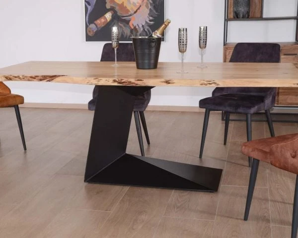 Livrée en 2 colis à assembler, cette table pourra trouver sa place dans de nombreux univers. Pourquoi ne pas aussi l’installer autour de meubles noirs pour harmonier l’espace ? Le côté chaleureux de son bois apportera une touche primaire et chaleureuse à votre déco. Niveau chaises, des assises en velours coloré ou à contrario en fer ultra moderne compléteront le tableau pour un effet WAOUH assuré. Ne contraignant pas les jambes de vos invités, le pied en métal noir signera la note finale d’une décoration singulière. Que demander de mieux ?