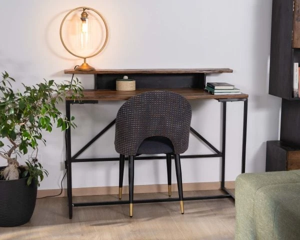 Donnez à votre espace de travail un caractère noble et délicat avec ce bureau en acacia massif et métal « Cachou Chic ».