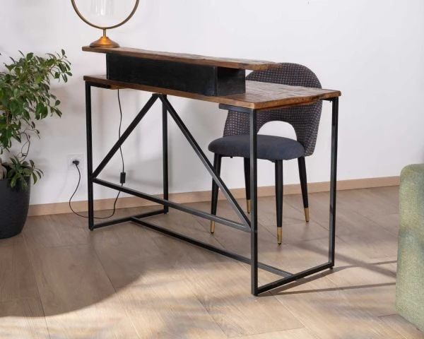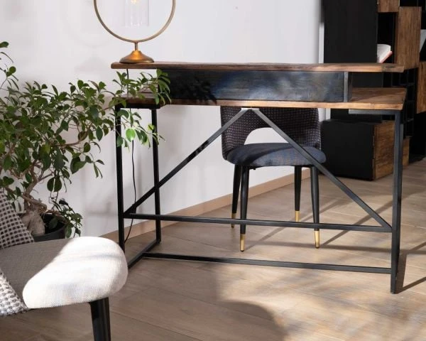 Contrastant avec la richesse du bois d’acacia, la structure en métal noir apporte une note industrielle au bureau et souligne son cachet raffiné, sans compromettre sa solidité.