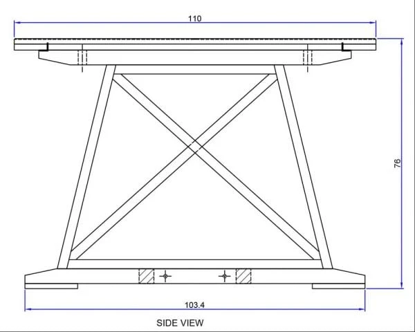 Distance entre le bord des pieds et la traverse centrale au sol : 38 cm