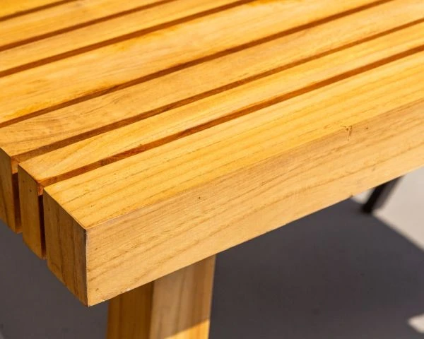 Robuste, chic et durable, votre mobilier de jardin a une apparence authentique. Sa délicatesse ne fait que mettre encore plus en valeur ses lignes épurées et sobres. Le teck donne un côté éclatant au mobilier et vous donne envie de voyager. Il possède des pigmentations naturelles allant du miel à l’orangé. Le bois de teck est également imputrescible et réputé pour sa tenue aux intempéries grâce à l’huile qu’il contient et ce de manière totalement naturelle. Comme tous les bois exotiques, il peut prendre des teintes grisées avec le temps particulièrement s’il est laissé en plein soleil. Pour le protéger et le nourrir, nous vous conseillons de lui appliquer un produit végétal spécifique.