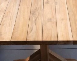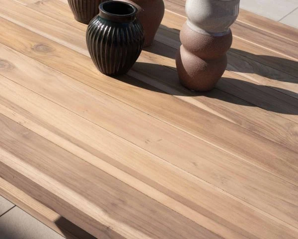 Le design sobre de votre majestueuse table de repas est subtilement réhaussé par la douceur et la finesse du veinage du teck, lui donnant un cachet inimitable tout en vous laissant le plaisir de l’accorder à votre décoration.