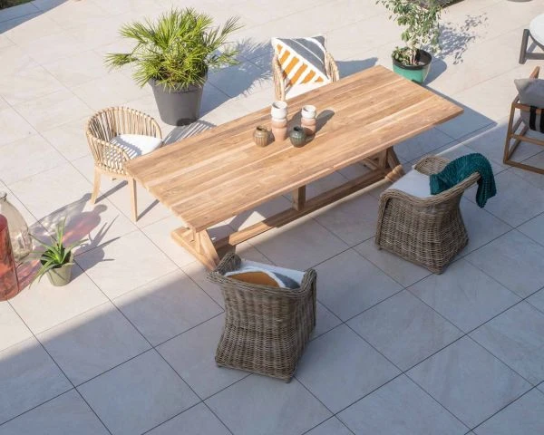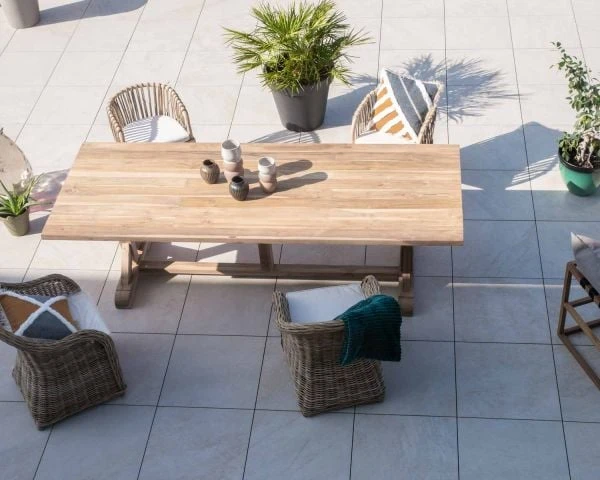 Découvrez un allié de taille pour une convivialité XXL en extérieur : la table rectangulaire en teck recyclé « Balangan beach » de 260 cm de long !