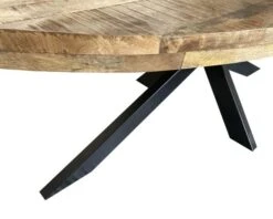 Le vaste plateau est en bois de manguier, une essence exotique particulièrement solide et épaisse. Ce bois de qualité possède une teinte assez claire proche de celle du noyer et un veinage soutenu qui apporte à chaque meuble un caractère unique et singulier. Cette table sera pérenne tout au long de sa vie. Inutile de la napper : les encoches et les chocs liés à son utilisation quotidienne se confondront dans les irrégularités naturelles du bois et accentueront son charme au fil du temps. Le piétement en métal se compose d’une structure dite mikado qui en plus de son aspect graphique et original, assure une stabilité à toute épreuve à votre nouvelle table de repas. A noter que cette forme est idéale pour laisser passer les jambes de s usagers sans encombre.