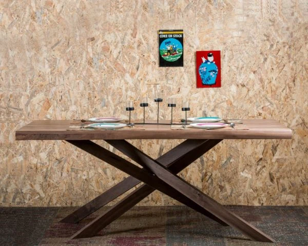 Son épais et moderne piétement vous fera penser au jeu de mikado de votre enfance. Mais là, la stabilité sera de mise pour cette belle table de séjour solide et de style contemporain. Conviviale et originale, votre table en bois de 180 cm de long, de 90 cm de large et de 76 cm de haut sera parfaite dans votre pièce de réception ou pourquoi pas dans votre grande cuisine pour rehausser un mobilier plus moderne.