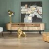 Originale, la table basse rectangulaire « Roots », avec ses dimensions de plus ou moins H50cm/l70cm/L120cm, allie deux matériaux, le bois et le verre. En bois massif, cette table de salon en teck offre un design très naturel, par sa base à l’aspect bois flotté. L’effet « souche » de son corps apporte une dimension extérieure à votre intérieur. Le plateau en verre de forme rectangulaire semble juste posé sur les racines en bois, ce qui confère une véritable authenticité au meuble. Recouvrant entièrement la base, le plateau assure la stabilité et l’aplomb de votre nouvelle table basse.