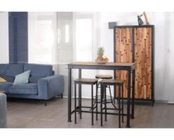 Voici une table haute tout à fait indiquée pour ceux qui recherchent le pur style industriel. Ceinture en IPN, plateau en manguier naturel avec un effet brut cette table à manger est parfaite pour donner une touche factory dans votre maison.