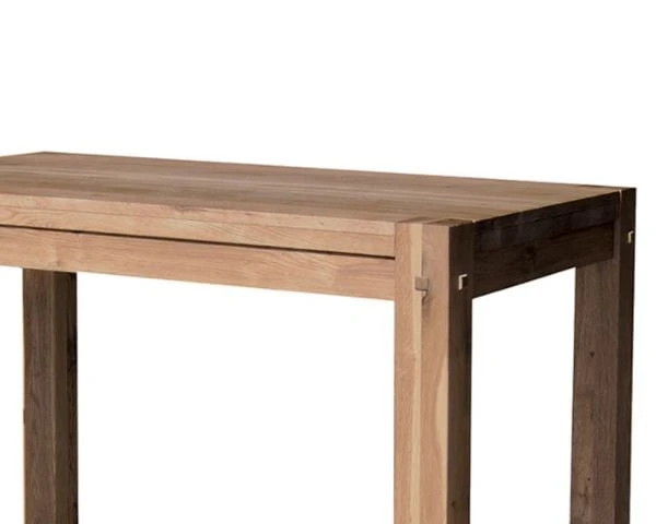 Apprécié pour sa polyvalence et pour la modularité de son utilisation, ce mange-debout de 120x70x105 cm (longueur x largeur x hauteur) possède un look moderne grâce à son design efficace et sans fioriture. Les 4 pieds longilignes en chêne sont là pour garantir l’aplomb sans faille du mobilier tout en soutenant un plateau à la finition latté chêne. L’assemblage par tenons et mortaises assure la pérennité de votre nouveau meuble de repas. Réalisé avec soin, il est parfaitement solide et pérenne.
